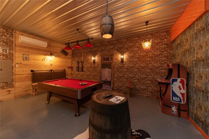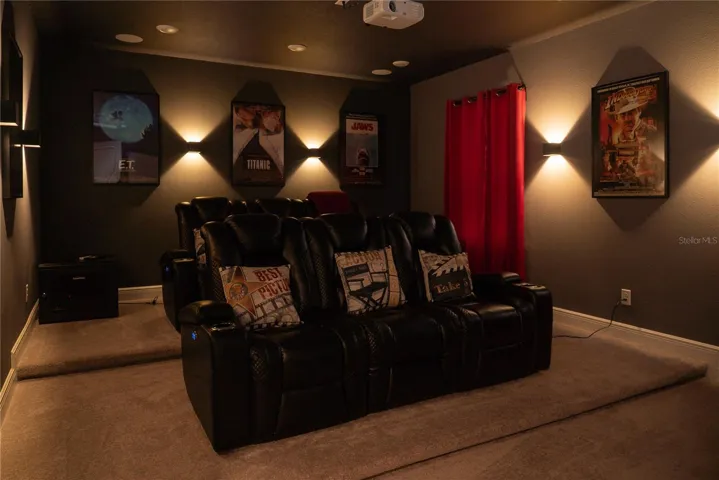 Fully-furnished 8-module residence in the gated Encore at Reunion resort community. This turn-key short-term rental features 7 bedrooms and 6.5 bathrooms, including two ground-floor primary suites. Custom-themed interiors include Harry Potter, Mickey Mouse, and Star Wars bedrooms, plus a Super Mario Bros themed family room. The garage is professionally converted into a country-themed bar and game room, while the 8th bedroom serves as a private home cinema.The exterior offers a screened-in heated pool, spa, and summer kitchen. Ownership includes access to the Encore Resort West Club amenities: a 10-acre water park with thrill slides, a resort-style pool, fitness center, and sports courts (tennis, basketball, and volleyball). The community provides a clubhouse with on-site dining and bars, plus complimentary shuttle service to Orlando theme parks. This property offers established rental history and is located minutes from Walt Disney World.