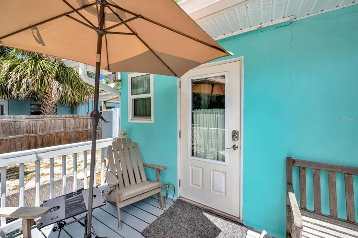 Experience the charm of coastal living in Crystal Beach, a quaint, close-knit Gulf-front community celebrated for its old Florida character, golf cart culture and unforgettable sunsets. This bright and inviting bungalow features a versatile 2-bedroom, 2-bath floor plan with a comfortable living and dining room combination. The galley kitchen has been updated with solid wood base cabinets, Corian countertops, and 2024 stainless steel Refrigerator, Range, and Dishwasher. Adjacent to the kitchen is a flexible bonus room that could serve as the perfect sunroom, office or additional dining area. The primary bedroom suite features an expansive walk-in closet and private bathroom with a Jacuzzi jet tub, complete with a newly installed pump. Extensive updates include new bathroom vanities, baseboard, luxury vinyl flooring throughout, and 2024 Washer and Dryer. Energy-efficient double-pane storm windows were installed in 2022. Major systems have been addressed for added peace of mind, including a 2025 HVAC, Hot Water Heater, Electric Panel, and the shingle Roof was replaced in 2017. Outside, enjoy newly refreshed front yard landscaping with Florida-friendly plants, a welcoming covered and screened front porch, and a private backyard oasis with a sundeck and paver patio ideal for relaxing or entertaining. An outdoor shower adds to the coastal lifestyle appeal and there is ample space for RV and/or boat parking. The detached oversized one-car garage provides excellent storage and extra room for a golf cart. No HOA and located in a highly sought-after A-Rated school district, this home offers an exceptional lifestyle in a prime location. Enjoy being just minutes from Live Oak Park – a neighborhood gathering spot with a scenic fishing pier. This home is also just 250 feet to the Pinellas Trail. Whether you’re searching for a full-time residence, a seasonal retreat, or investment opportunity, this home delivers the perfect blend of comfort, versatility, and laid-back coastal living!