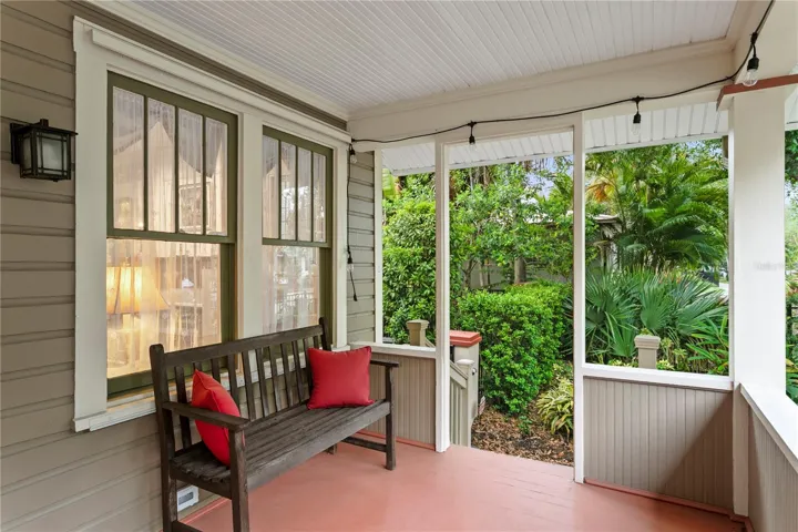 Just one block from Beach Drive, tucked within the storybook streets of Old Northeast, this 2 bedroom plus den, 2 bath bungalow feels both timeless and quietly elevated, complete with a rare 4 car garage spanning approximately 725 square feet, an unheard-of feature for the location. From the moment you step inside, the home reveals its character through warm wood floors, crown molding, and original details that have been thoughtfully preserved. Sunlight filters through classic windows, casting a soft glow across the living spaces, where a gas fireplace with custom tile hearth and built-ins creates a natural focal point. The kitchen blends function with understated charm, featuring quarry tile floors, new granite countertops, custom cabinetry with thoughtful built-in features, a pull-out pantry, and a stainless farmhouse sink. It is further equipped with an integrated refrigerator with fridge/freezer drawer and interior water dispenser, a new microwave/convection/air fryer, and a retractable hood with light, along with gas cooking, and a kitchen workstation. It opens with ease into the heart of the home, designed for living that feels both relaxed and intentional. Just beyond, a screened dining porch offers a breezy, intimate setting that invites long, unhurried evenings. The bedrooms are peaceful and tucked away, while the den offers a flexible space for work, reading, or guests. Behind the scenes, the home is equipped with modern comforts including updated HVAC, tankless water heating, storm protection, a security system with cameras, and natural gas generators serving both the main home and the detached ADU, with no flood insurance required. The outdoor spaces feel curated yet effortless, with brick pathways, mature landscaping, and private garden moments throughout. A detached ADU offers 2 bedrooms and 1 bath across approximately 725 square feet, complete with its own dedicated parking space, ideal for guests or income potential. All of this, just steps from the waterfront and the charm of downtown St. Petersburg, where daily life unfolds with a sense of ease and quiet beauty.