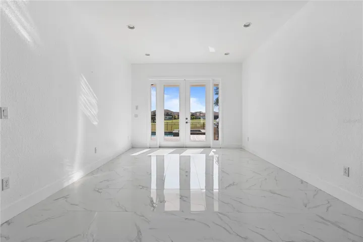 Beautiful two-story home located in the guard-gated Eagle Creek golf community of Lake Nona. This spacious residence features five bedrooms, four bathrooms, a chef’s kitchen with 42″ cabinets, granite countertops, and stainless steel appliances, along with multiple living areas that open through French doors to a large lanai overlooking the pool and golf course. The upstairs master suite offers tray ceilings, dual closets, and a luxurious bath. A versatile fifth room may be used as a bedroom, media room, or flex space. Additional highlights include a three-car garage, paver driveway, and barrel tile roof.