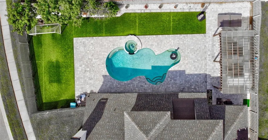 Timeless elegance meets contemporary luxury in the heart of Hunters Creek. From the moment you arrive, a stately circular driveway, secondary side entry, and abundant guest parking set the tone for the grandeur within. A new roof (2022) and fully paid-off solar panel system (2023) deliver lasting value and energy savings from day one. Inside, large-format marble porcelain tile flows throughout an open-concept layout anchored by a custom entertainment wall with wood-textured paneling, floating console, sleek electric fireplace, and designer lighting. The show stopping kitchen features gold-hardware cabinetry, a bold navy waterfall island, quartz countertops, high-end stainless steel and glass appliances, and a sculptural LED chandelier — where cooking and entertaining are equally inspired. Outside, your private backyard oasis awaits: a sparkling pool and spa surrounded by lush artificial turf, a stone-paved patio, rustic-modern pergola, outdoor shower, and a convenient half bath — resort-style living at home. The primary suite is tucked on the main floor for privacy and ease, with four additional bedrooms upstairs. Every detail deliberately chosen. Every finish beautifully realized. Hunters Creek was built for those who love to move. Residents enjoy an impressive array of recreational amenities including tennis and pickleball courts, volleyball and sand volleyball courts, basketball courts, soccer fields, and baseball diamonds — all within the community. Whether you’re a seasoned athlete or just looking for a friendly game with neighbors, there’s always something going on.Few communities offer the kind of convenience Hunters Creek delivers. Walt Disney World and the broader theme park corridor are just minutes away, making weekend magic effortless. Orlando International Airport is a quick, easy drive — a huge plus for frequent travelers and professionals alike. Downtown Orlando, with its thriving dining, arts, and nightlife scene, is equally accessible, and the surrounding area is rich with employment opportunities across tourism, tech, healthcare, and beyond. Tree-lined streets, well-kept parks, and a genuine sense of community set Hunters Creek apart. It’s a place where neighbors become friends, and every amenity you need — from shopping and dining to recreation and green space — is right at your fingertips.Hunters Creek is served by some of Orange County’s most highly regarded schools.