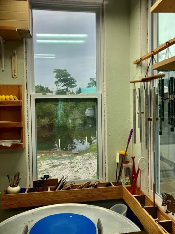 Experience this mid-century waterfront property in Punta Gorda, Florida. This historic small town is a hidden treasure trove of natural beauty, resources, and entertainment. Find yourself in the upper River location 550 yards up a navigable canal to a backwater Bay teaming with aquatic and marine life. Launch from your private boat ramp or get your bay boat off the lift for some salt water time. Canal front amenities include freshwater shore, power, 10K boat lift with canopy, lots of Park space, well lit area. Find yourself at peace in this waterside, classic with southern style charm in an old neighborhood minutes from the creature comforts that this area offers. This property offers a rare blend of privacy serenity, and the off the beaten path that Fla is. This asset features, classic construction and layout of a modified vernacular with a lifestyle of coastal dwelling. Designed a landscape features as low maintenance, CBS and stucco, easy access receptacles, all around impact glass and more! No HOA, live free! Indulge in the luxury of your private pool with an estimated depth of 3 feet 6 feet. The outdoor lanai space is a Haven for relaxation and entertainment with the 38 x 40 area encompassing the lazy L pool, distributed, power and water, also a convenient 6‘x6′ outdoor shower. Step out back for some cornhole or shuffleboard on the 14 x 40 concrete slab or take a martini to the dock and catch dinner. The cottage includes three bedrooms, two bath, with a central open concept, kitchen, dining and a visually aesthetic layout from the front door through to the boat lift! Living room and laundry are conveniently offset. The primary suite with en suite bathroom, includes open concept, rest, and bath. Two additional bedrooms, are split from the primary with a second bathroom. Kitchen is a wide galley of bamboo cabinetry, French door fridge with ice and filtered water, induction convection range with a pot filler. Deep court sink and an epoxy countertops, and deeper and higher than standard. Tile throughout, block/CBS walls. Neutral white. And for your hobby being dreams, a 10 x 20 art studio, currently housing a Glass fusion and ceramicist shop, you can draw inspiration from the east view of the secured black bay. Studio has distributed power, AC, hot and cold, running water. Come and relax in the picture sanctuary. For him and oversize garage. Not enough of a safety zone for your privacy in peace, an additional adjoining parcel is available with purchase.