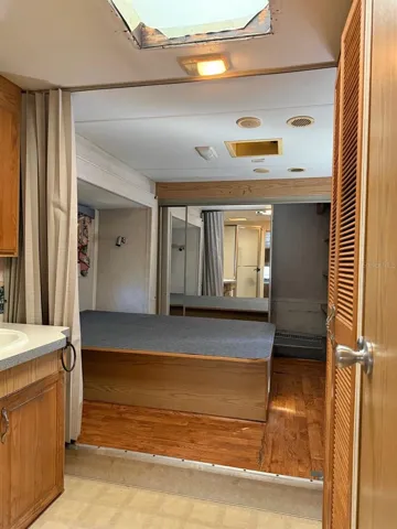 You own the land with a 1997 Westport 5th wheel 36 feet attached to land with large, enclosed Florida room. Many custom features. Inside you will find lots of cabinet space, full size fridge, eat-in kitchen area with dinette and breakfast bar, stack-able washer/dryer inside, large shower with separate room commode. Utility shed, lawn mower, gravel parking and semi-private sitting area in the rear. The monthly Condo fees are including water, sewer, trash pickup, 24/7 virtual gate, 110,000-gallon Pool, On-Site condo office, and activities. Just pay your condo dues and metered electric bill for a prime location in sunny Florida! Location is very convenient with lots of dining, shopping and hospital. You own the land, No lot rent.