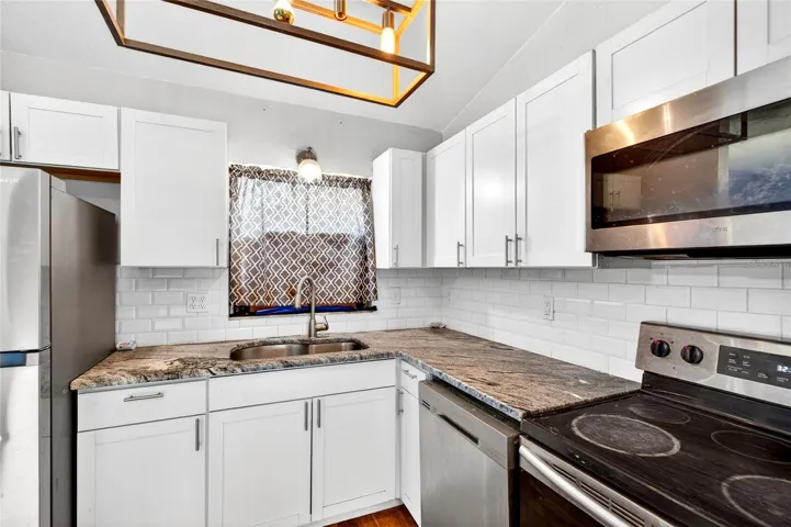 No Hoa, front covered entry features 4 bedroom 2 bath home that has been completely remodeled from top to bottom with a 2020 roof, 2020 windows, 2020 hot water heater, , 2020 updated kitchen cabinets, , 2020 GRANITE countertops with a gorgeous TILE BACKSPLASH and 2020 STAINLESS STEEL APPLIANCES. 2020 Luxury Vinyl Flooring(whole home) and trim throughout entire home! All light fixtures throughout home 2020. HVAC system was replaced in 2015. When you walk in you will be greeted by a nice open floor plan entering into the living room with vaulted ceilings, this area leads to focal point of home the kitchen with island and dining room with sliding doors, leading to spacious backyard that is fenced.. Home features a large primary bedroom with walk-in closet and barn door style door to primary bathroom. Oversized interior laundry room / utility room. All bedrooms feature new light fixtures with fans and the closets in all rooms feature nice shelving systems! There is no garage but plenty of driveway for several cars.