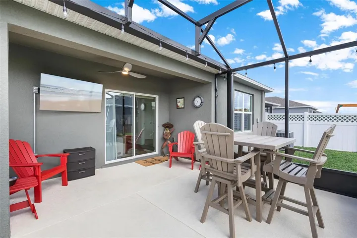 The guest bath mirrors this attention to detail with granite surfaces and its own upgraded glass shower enclosure. Outdoors, a cathedral-style screened patio invites you to relax or entertain, enhanced by a built-in dog door added in 2023. Beyond, the aluminum-fenced backyard—with dual gates—opens to picturesque lake views, creating a serene backdrop for quiet evenings or weekend gatherings.