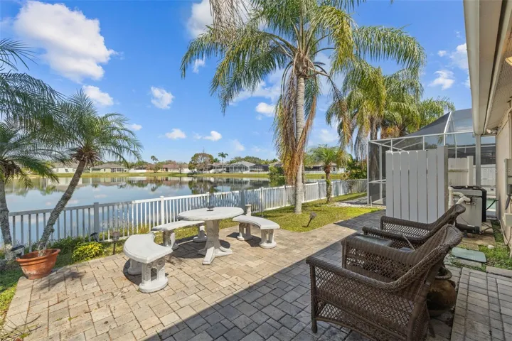 Located in the highly sought after golf community of Lexington Oaks, this beautifully maintained 4 bedroom, 3 bath, 3 car garage pool home offers stunning pond views and a functional split-bedroom layout. A bright, open floor plan welcomes you with formal living and dining areas, while the spacious primary suite features direct pool access and a well-appointed ensuite with dual vanities, garden tub, walk-in shower, and walk-in closet. The open kitchen includes ample cabinetry, a prep island, and breakfast nook overlooking the pool, flowing seamlessly into the family room, perfect for everyday living and entertaining. Two secondary bedrooms share a full bath, while a private guest/in-law suite at the rear includes a pool bath and Murphy bed for added flexibility. Enjoy Florida living outdoors with a screened lanai, sparkling pool and spa, fenced backyard, and pavered entertaining area overlooking the water. Community amenities include a golf course, clubhouse, Omari’s Bar & Grille, resort-style pool, fitness center, basketball, tennis courts, and more, all conveniently located near I-75, top-rated schools, shopping, and dining.