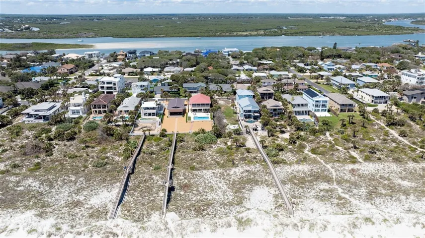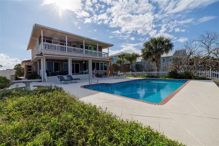 Situated along the Atlantic Ocean shoreline in New Smyrna Beach, this stunning oceanfront home blends spacious comfort with magnificent coastal views! With 6 generously sized bedrooms & 4 full bathrooms + 2 half baths, it offers plenty of room for family gatherings, guests or simply spreading out and enjoying the serene surroundings. The heart of the home on the second level features an open floorplan where large windows & sliders frame uninterrupted views of the ocean & open to a spacious porch overlooking the huge deck & sparkling pool. The spacious eat in kitchen has room for a table & a breakfast counter bar and opens to the dining room area & a sitting area which also provides great views of the ocean. The kitchen has SS appliances, lots of cabinets with pull out shelving & two pantries! The second level features 4 Bedrooms, 2 full baths & a half bath. The primary suite on the third level stands out with its private balcony, where mornings begin with beautiful sunrises over the water & the soothing rhythm of the waves. Also situated on the third level is a 6th Bedroom & full bath, along with a large game room with pool table. The first level has an oversized double garage + a workshop, 12.7×5.3, storage area, 18.9×7.8, a basement or extra storage area, 12.2 x 7.10 plus a utility room, 17.3×8.4. Very well built by a famous contractor named Pelligrino as his personal home to take advantage of the breathtaking oceanfront setting & protected by a poured concrete seawall. The sparkling pool is 30 x 15 and is surrounded by a huge 25 x 45 deck, great for entertaining with friends & family. Both pool & deck were resurfaced in 2024, along with the replacement of the pool equipment. The 2nd & 3rd floor were completely remodeled in 2005 after the hurricanes of 2004 which included new hurricane rated windows & sliders. Metal roof was added in 2009, water heater new in 2021 & 2 HVAC units, 1 downstairs 2015 and one on the 3rd floor new in 2022. Only 1 mile to vibrant Flagler Avenue where you can enjoy art festivals, wine tastings, and lots of shops & restaurants stretching from the river to the ocean! Make this your piece of paradise today!