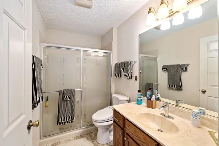 The PRIMARY SUITE is a true retreat featuring a LARGE WALK-IN CLOSET, WALK-IN SHOWER, SOAKER TUB, and a PRIVATE WATER CLOSET. The guest bedroom is thoughtfully designed with a BAY WINDOW for added space and includes a BUILT-IN MURPHY BED, making it ideal for guests or a flexible office setup. The GUEST BATHROOM features a WALK-IN SHOWER for convenience and comfort.