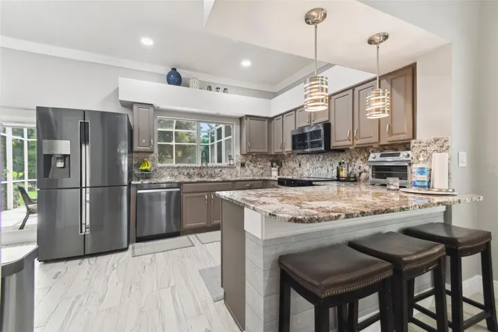 bathroom. Modern decor, colors, and granite throughout. Newer stainless steel appliances. Lawn care, sewer, and trash are included in rent.