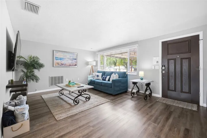 Boaters dream! Set on a peaceful waterfront lot in Lake Shore Estates, this updated 2-bedroom, 2-bath home offers a rare blend of style, flexibility, and direct access to Lake Tarpon. Inside, luxury vinyl flooring runs throughout the main living areas, creating a clean, low-maintenance feel, while the upgraded kitchen features stainless steel appliances, leathered granite countertops, and ample cabinetry. The primary suite includes a private bath and French doors that open to the back deck, seamlessly connecting indoor and outdoor living. The backyard is designed for relaxation and entertaining, with an expansive deck, above-ground pool, and direct water access for boating, fishing, or simply enjoying the view. Mature landscaping adds privacy, and with no HOA, the property offers freedom for full-time living, seasonal use, or short-term rental income. Conveniently located near shopping, dining, Gulf beaches, and a short drive to Tampa and Innisbrook Golf Resort, this is a well-positioned home that works equally well as a residence or investment opportunity—offered fully furnished for immediate enjoyment or turnkey rental potential.