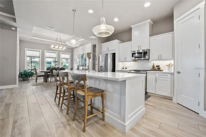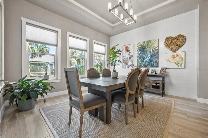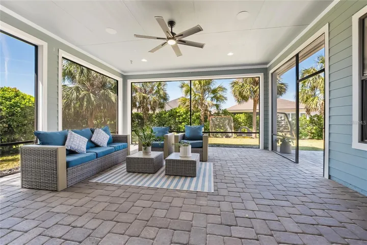Oakmont 4 bedroom/3 bathroom Arden Model on premium lot across from Oakmont Amenity Center. Former ICI Homes Parade Home filled with beautiful upgrades and modern touches throughout. Quartz counter tops, 70″ Crave gas fireplace with stone wall and mantle in gathering room, over-sized fans and designer lighting, shiplap walls in the study and dining room with shiplap tray ceilings in the foyer. Custom faux painted walls in bedrooms, Kohler free standing tub, Purist collection plumbing fixtures, upgraded wall and floor tile. GE wine fridge. White cabinets with glass inserts in kitchen. Kohler Whitehaven farm sink. Sliding and stacking doors open to the extended screened lanai and additional landscaping package. Special-made draperies throughout. Bronze/white window upgrade. Paver drive, walkway, porch and lanai. Plush carpet upgrade. Gorgeous chef’s kitchen with beverage fridge. Stained front entry door and side lights. Drop zone. Whole house flat trim crown molding. Barn doors at master bath and bedroom. The master suite features a luxurious bath and a large double entry walk-in closet. Mounted tv in bathroom for viewing pleasure. Premium location just across the street from Oakmont”s Residents Club. Fully fenced yard and upgraded landscaping for optimal privacy. You will love the conservation area between the homes.