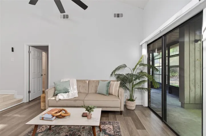 Remodeled home in desirable Pebble Creek Villas. This is a one story end 2/2 unit that has been remodeled from top to bottom. The property updates include luxury vinyl plank flooring, interior paint, new bathroom vanities, new shower tile in the guest bathroom, new kitchen cabinets and counter tops, stainless steel appliances and more! The screened in rear porch has vinyl windows for all weather use. The HOA includes exterior maintenance (roof), community pool, pavilion and maintenance of the common areas.