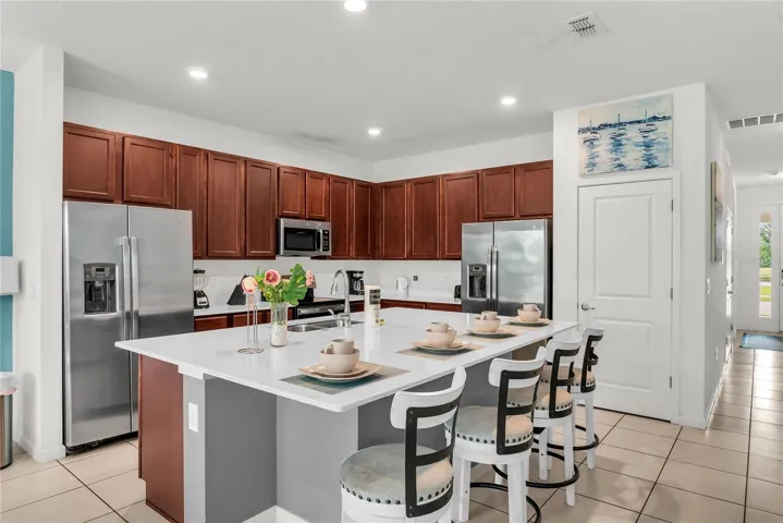 Sleeping up to 23 guests, this home was built for groups. Two living rooms. Two full laundry setups. A game room in the converted garage. A gourmet kitchen with granite countertops, stainless steel appliances, and an oversized island that becomes the center of every gathering. There’s even a crib and high chair for the families traveling with little ones — the kind of thoughtful detail that drives five-star reviews and repeat bookings. Step outside and you’ve got a private screened pool overlooking a peaceful lake. No neighbors staring back at you. Just water, sky, and Florida sunshine. The location is the unfair advantage. You’re 8 miles from Walt Disney World, 14 miles to Universal Studios, 10 miles to SeaWorld, and 19 miles to Orlando International Airport. The Space Coast and Atlantic beaches are just about an hour east. This is the address that guests search for — and book on repeat. Use it as a pure investment. Or make it your primary home and rent it when you travel. The flexibility here is real. The current property management company handles everything, and the entire operation — bookings, systems, and brand — conveys with the sale. You can be completely hands-off from day one. Opportunities like this don’t sit on the market. A fully operational short-term rental in one of the most visited zip codes on the planet, with income in place and a private lake-view pool waiting for you. Schedule your showing today!