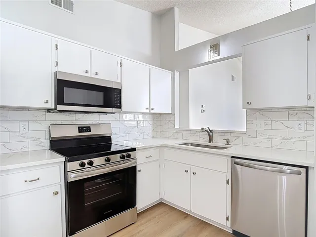 Stop looking and buy this beautiful home! This truly move in condition 55+ 2nd floor condominium has many beautiful updates throughout! Others claim to be move in but this one truly is! SO what makes it move in? Glad you asked! The entire home has just been painted a neutral color that goes with all furniture. The kitchen has brand new, never used appliances including washer, dryer, dishwasher, microwave, refrigerator and stove. The flooring in most areas is NEW luxury vinyl plank flooring. Quartz countertops and new lighting as well. The washer and dryer are in a large closet in the kitchen so laundry is easy to do while making a meal or enjoying a cup of your favorite beverage. There is a pass-through to the dining area so the cook can still be part of the entertaining while being in the kitchen. The bedrooms have NEW carpet for that soft feel on your feet and the quiet softness you expect in the bedrooms. The primary en-suite bath is all new with: ceramic tile, luxurious quartz countertops and double sinks so no jostling to get ready. There is a new tub and separate shower stall with new tile as well as new lighting. There is a separate water closet for that extra bit of privacy. The main living area has an open concept with tall vaulted ceilings making the space seem even larger than it is. There is a screened porch off of the living area that over looks the Beacon Woods amenities across the street. The second bedroom has new carpet and paint as well. Located at the far end of the unit, this split plan offers privacy to both bedrooms. The second bath is right next to the guest bedroom for extra convenience. The second bath has a tub and shower combination. Access to the home is through INTERIOR stairs. So many other units have exterior stairs forcing you to deal with the weather while entering the house. Dedicated parking is under a carport right in front of the unit. Outside is a small storage shed on the ground level. Many residents feel safer with a second floor unit since access is through only one door. Included in the low monthly fee of $465 monthly is all exterior maintenance, roof, drinking water, sewer, basic cable, trash and recreational facilities. The water heater and air conditioning are only several years old so no major repairs are expected. The community has its own clubhouse with activities, pool, hot tub and shuffleboard. Located in the larger Beacon Woods subdivision, residents here have access to all those amenities at no extra charge. The Beacon Woods amenities including a heated pool, lighted tennis & Pickleball courts, basket ball, shuffle board, bocce ball, playground, and loads of activities at the clubhouse. Beacon Woods is built around a beautiful semi-private golf course. Beacon Woods is a bird sanctuary with winding roads and mature trees. This area is close to shopping, restaurants, fishing, and many outside activities. It is a short drive to St. Petersburg, Clearwater, Dunedin, Tampa and Orlando. Close enough to be convenient yet far enough away to be affordable. You will not find a better value anywhere. One small pet is allowed under 25 pounds. There are vehicle restrictions and one buyer must be 55 or older. Be sure to review all HOA rules. All dimensions are approximate & buyers are urged to confirm information deemed important to them. This unit is priced to sell and in excellent condition. Come see for yourself- don’t take my word for it! It will be gone soon so hurry!