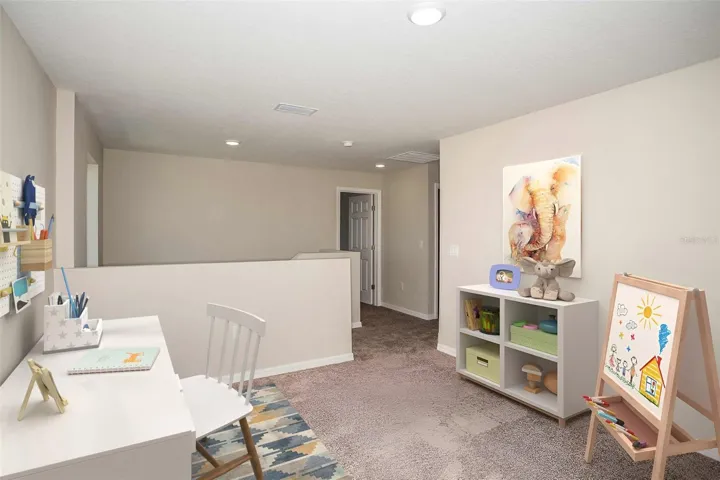 Invite yourself into the Lucia, a two-story home with 5 bedrooms, 3 bathrooms and a private 2-car garage. Just off the foyer, you’ll find a welcoming guest suite complete with a private bathroom, offering the perfect blend of comfort and privacy. The open concept living area, highlighted by luxury vinyl plank flooring, flows seamlessly into the kitchen, which features sleek quartz countertops, stainless-steel appliances and a spacious pantry. Sliding glass doors lead to a charming patio, ideal for outdoor relaxation in the Florida climate. Upstairs, the flexible recreation space and stylish master suite—with its walk-in shower, dual vanity and oversized walk-in closet—provide a serene oasis. The 3 additional bedrooms, full bathroom and laundry room equipped with brand new washer and dryer make everyday life convenient. With a smart thermostat with voice control, beautiful landscaping, and an eye-catching elevation, this home ensures both style and practicality.