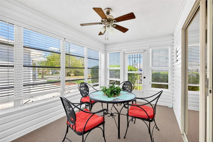 Looking for effortless Florida living? This furnished 2-bed/2-bath home offers 1,352 sq ft of single-level living with an open layout, screened lanai / Florida Room and car port garage. You’re a short ride from the recently refreshed Chula Vista Recreation Center—home to craft rooms, billiards and an adult pool with a fire pit—and the historic Chula Vista Executive Golf Course. A short drive or golf-cart ride to Spanish Springs Town Square for free nightly entertainment, shopping and dining, and enjoy grocery stores, cafés and restaurants within 0.5–0.7 mi. It’s all here—just bring your toothbrush!