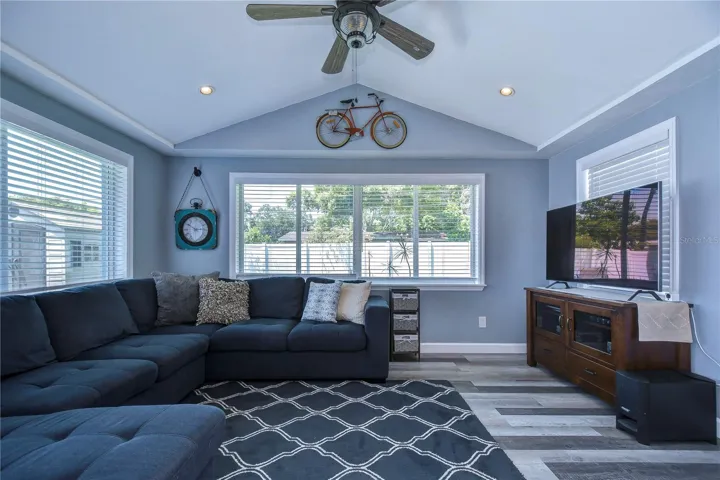 Come make this Home your Home Sweet Home in St. Pete! Enjoy indoor and outdoor living in this beautifully landscaped and meticulously maintained 3 bedroom, 1 bath solid block construction home in the growing area of West St Pete. Step inside to discover a special place that is a perfect blend of modern upgrades and cozy charm. Its fully renovated interior will appeal to your sense of style; and the numerous upgrades will give you peace of mind. Be greeted by a flowing & flexible floorplan- just right for all of your home living/working/entertaining needs. The open concept kitchen is fully renovated with artisan stained woodblock countertops, a beautiful granite top center island, and a window above the sink that overlooks the backyard oasis. The built in coffee bar perfect to make your first sip of coffee and for extra storage. And the family room addition with vaulted ceilings and lots of natural light will become one of your favorite spots in this home. The bathroom was practically and stylishly updated w/large vanity and custom cabinetry instead of traditional linen closet. Each bedroom has closet organizers and new ceiling fan fixtures. The oversized and fully AC’d (with high end Mitsubishi mini split) garage and laundry area that would be great for your workshop or crafting projects… And second bathroom if needed could be combined with the laundry area. Step outside an discover the lush backyard paradise- featuring tropical landscaping, a uniquely designed and built custom Pergola perfect for al fresco dining, and a generous 26′ x 15′ paver patio with a LED lit Thermospa jacuzzi and retractable cover for all of your relaxing and splish splashing.. The property’s brand new sprinkler well will keep the new sod well watered. The Lifetime 8′ x 15′ shed for all of your gardening and outdoor toys was purchased in 2018 and will convey with the property. The updated windows are double paned and the roof is BRAND NEW (2024)The home has been freshly painted inside and out. And the property is fully fenced with a 10ft access gate, and extended driveway with an RV/BOAT parking pad + electric. In addition to all that this home has to offer…. it is non-flood zone and located in a growing and fabulous location! Close to Pinellas Trail, JW Cate recreation center (pickleball, basketball, tennis, play zone, teen camps, classes, etc) Tyrone area shopping center and restaurants. And it is only 15 mins to Downtown St Pete and 15 minutes to the beautiful Gulf of Mexico Beaches! Come on by and discover how beautiful this Home Sweet Home! Pets allowed with Landlord Approval. Must be willing to maintain the property.