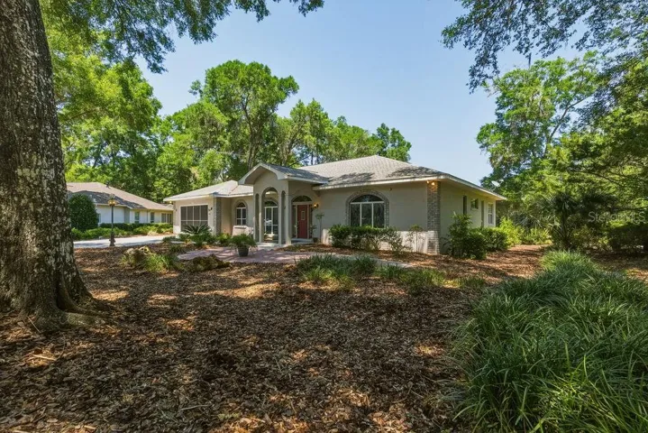 Discover your dream home in Rainbow Springs! This beautiful property offers elegant living with French doors that open to an extra-large enclosed lanai—perfect for relaxing or entertaining year-round. Inside, you’ll find tile flooring in all wet areas and a spacious kitchen featuring granite countertops, a central island, and abundant cabinet and counter space. The living room boasts a built-in entertainment center, creating a warm and inviting space to gather. The oversized primary suite offers a true retreat, complete with a luxurious bathroom featuring a Jacuzzi tub, walk-in shower, and dual sinks. Additional highlights include a large indoor laundry room and an oversized two-car garage. Step outside to enjoy a screened-in area off the lanai with your own Jacuzzi tub—ideal for unwinding in privacy. As a bonus, you’ll have access to the stunning Rainbow River through a private owners’ park just a short walk from your doorstep.