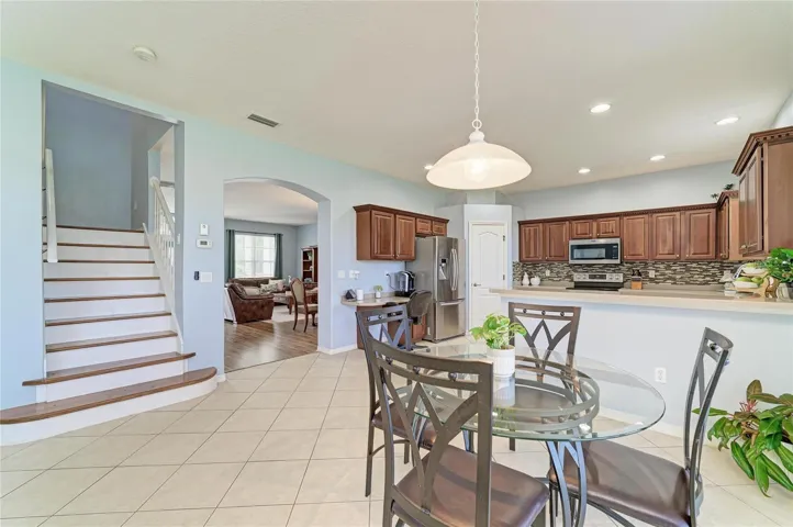 Welcome to this beautifully updated 4-bedroom, 3.5-bath residence in the sought-after gated community of Stoneybrook at Heritage Harbour, where serene pond views and exceptional amenities create the perfect Florida lifestyle. Thoughtfully designed for both everyday comfort and entertaining, this spacious home features newly installed luxury vinyl plank flooring throughout the living room and all bedrooms offering both style and easy maintenance. The well-appointed kitchen is a standout, featuring stainless steel appliances, solid surface countertops, an abundance of cabinetry, a walk-in pantry, and breakfast bar ideal for casual dining or gathering with family and friends. All bedrooms, including the expansive primary suite, are thoughtfully situated on the second floor, creating a private retreat away from the main living areas. The primary suite offers a spacious escape with a private nook ideal for a home office, reading lounge, or sitting room. Its en-suite bath delivers spa-like comfort with a soaking tub, glass-enclosed shower, dual vanities, and two generous walk-in closets. Three additional bedrooms are well positioned to provide comfort and flexibility for family or guests, complemented by two full baths. Enjoy peaceful pond views from your own backyard while living in a community known for its outstanding amenities, including a community center, fitness center, resort-style pool and spa, tennis courts, volleyball, dog park, and an active social calendar with planned events and activities. Convenience is unmatched, with Costco, Target, Hobby Lobby, restaurants, and everyday essentials just five minutes away, plus easy access to I-75 for quick connections to Sarasota, St. Petersburg, Tampa, and the Gulf Coast’s world-renowned beaches. Combining spacious interiors, thoughtful updates, scenic water views, and a vibrant amenity-rich community, this exceptional home offers the very best of Florida living.
