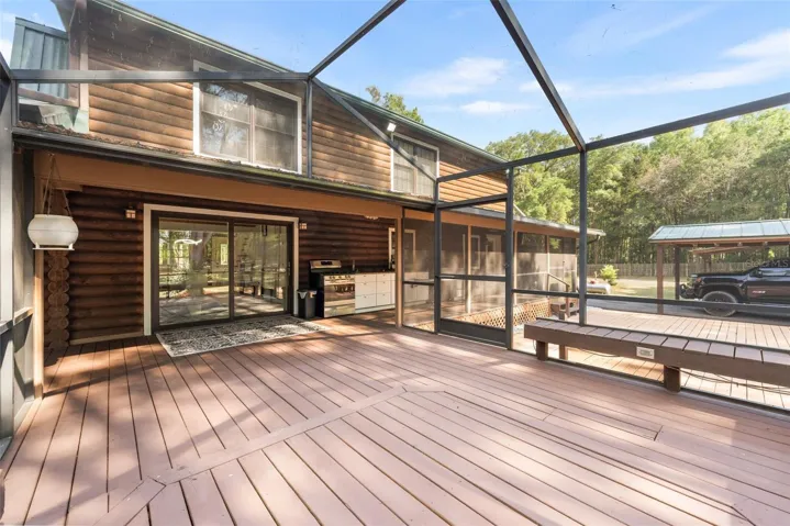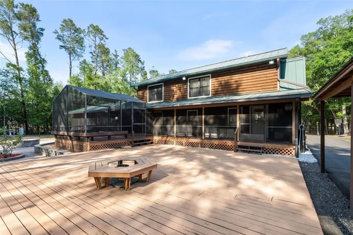 4 bedroom, 2.5 bath modern log cabin styled home is for the outdoor enthusiast and has everything you could need, including a square foot workshop, a dedicated boat storage / washing area, multi car carport, a fire pit, massive full length screen porch and outdoor kitchen… and we haven’t even made it inside.