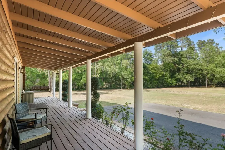 As you walk up the covered front porch through the front door you’ll immediately notice the quintessential pine log walls and cathedral ceilings. The spacious living room leads to the dining room which is perfectly situated between the remodeled kitchen and massive, 600 square foot bonus room. The kitchen is complete with real wood cabinets and updated quartz counter tops.