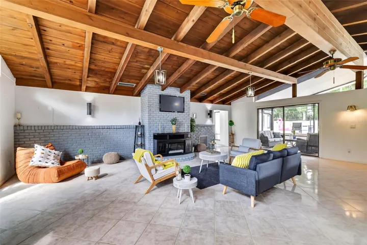 A Rare offering of Privacy, Scale, and Sophistication—this Jaw-Dropping, One-Of-A-Kind Estate has just debuted in Ocala and is truly a MUST SEE! $30,000 GIFT AT CLOSING! Tucked away on 2.59 acres of beautifully wooded land, this nearly 5,000 sf Pool Residence delivers the ultimate blend of refined living and peaceful seclusion with NO HOA, and the entire property fully fenced for added privacy and security. From the moment you arrive, the sense of space is undeniable. Expansive grounds provide abundant room for all your toys while offering wide open land to enjoy, entertain, and create your own private retreat. Step inside to a welcoming foyer which opens into a thoughtfully curated layout that leads to a breathtaking central living space. The grand family room is nothing short of spectacular, showcasing Soaring Cathedral Ceilings with Exposed Wood Beams, Rich Tongue-and-Groove Planks, and a warm, Elevated “Luxury Lodge” Ambiance. A custom bar anchors the space, perfect for entertaining, while oversized sliders seamlessly connect indoor living to your private outdoor oasis. The resort-style pool and expansive paver patio set the stage for unforgettable gatherings and everyday relaxation. A charming walkway leads from the pool area to a dedicated firepit space—perfect for cozy evenings under the stars, surrounded by the tranquility of your wooded surroundings. This exceptional residence features 4 spacious bedrooms and 4.5 bathrooms, along with versatile bonus spaces designed for modern living. Just off the primary suite, a charming music room or office provides the perfect creative escape, while a sunlit gym—complete with equipment—can easily transform into a reading lounge or wellness retreat. The attached pool house, offering a private entrance, living area, and full bath, is ideal for guests, in-laws, or multigenerational living. The heart of the home continues with a generously sized formal dining room and a beautifully appointed kitchen featuring an island, breakfast bar, eat-in space, and dual pantries—perfectly suited for both everyday living and entertaining. The primary suite is a true sanctuary, offering a wall of closets, a walk-in closet, and a spa-like bath with dual vanities, soaking tub, and separate shower. Two guest bedrooms share a Jack-and-Jill bath, while an additional guest suite with private bath provides the perfect second master option. Meticulously maintained and thoughtfully updated, this home offers peace of mind with major improvements already completed! Beyond the property, the lifestyle is unmatched. Enjoy nearby riding and walking trails, with Santos Trailhead just 4 miles away for world-class mountain biking. You’re perfectly positioned just 4 miles from vibrant downtown Ocala with its dining, shopping, and more, 9 miles to the crystal-clear beauty of Silver Springs State Park, and only 11 miles to the renowned World Equestrian Center. Ocala itself is a hidden gem—gracefully blending natural beauty, tranquil living, and growing opportunity. Known as the “Horse Capital of the World,” it’s defined by rolling pastures, grand oak trees draped in Spanish moss, and an unmistakable countryside elegance. With access to stunning natural springs, a more approachable cost of living, and proximity to both coasts and major cities, Ocala offers a rare balance of serenity and potential. This is more than a home—it’s a lifestyle. A Private Estate where Luxury meets Land, and every detail invites you to live beautifully.