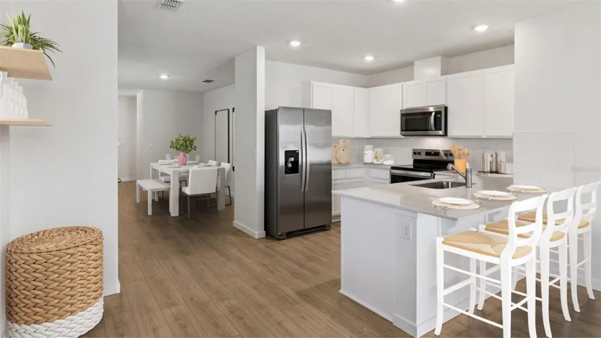 Under Construction. Wynwood presents the Allex. This all concrete block constructed, one-story layout optimizes living space with an open concept. As you go down the hallway and enter a spacious kitchen featuring stainless steel appliances with ample counter space and a walk-in pantry for extra storage. The living room is complete with a view to the covered lanai outside. Bedroom one, located at the back of the home for privacy, has an en suite bathroom that features a double vanity sink with a walk-in closet. Two additional guest bedrooms and one bath are tucked away down the hall from the dining room. The laundry room is located at the front of home near the two-car garage. Like all homes in Wynwood, the Allex includes Smart home technology package which allows you to control your home with your smart device while near or away.