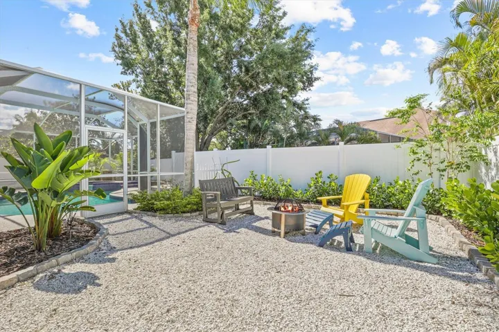 Step outside to a private backyard retreat designed for the Florida lifestyle, featuring lush tropical landscaping, a sparkling pool with a new pump and safety pool fence. A new vinyl fence surrounds the backyard, creating a private outdoor space with a refined and crisp finished look, while fresh exterior paint completes the home’s striking presentation.