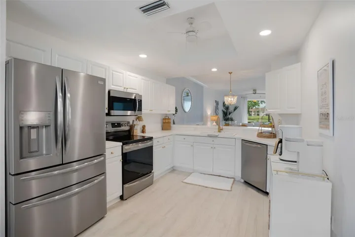 Welcome to your private coastal retreat in the highly sought after Heritage Oaks Golf & Country Club. This beautifully renovated Abby floorplan offers the perfect blend of elegance, comfort and Florida lifestyle. This first floor corner unit shows off all of the natural light and lush landscaping throughout the entire day. The open floorplan features an open kitchen with breakfast nook seating, two bedrooms, two bathrooms, a versatile den/office and private garage. Every detail has been carefully curated with a light, elegant coastal design-creating a serene and inviting atmosphere with serene views of the golf course, nature, and water from the private screen lanai. The den provides flexibility for a home office guest space or additional lounge area. Heritage Oaks is a bundled Golf community, where residents can enjoy championship golf, tennis, fitness center clubhouse dining pool and active social lifestyle all within a beautifully maintained gated setting.