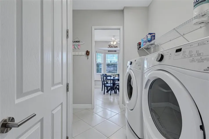 This property also offers valuable peace of mind with a newer roof (2024), hurricane shutters, built-in garage storage, low HOA fees, and a location in Flood Zone X. For added convenience, the outdoor furniture, outdoor TV, washer, and dryer are all included.