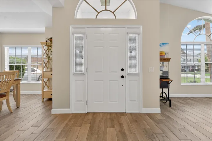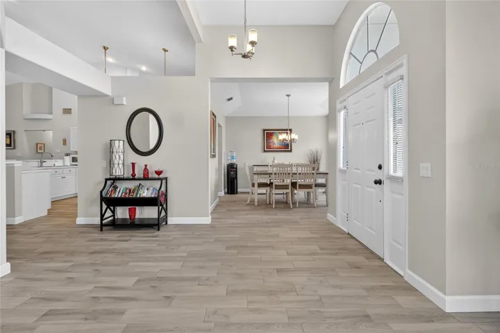 Already appraised for the listing price, this home is a great opportunity for massive savings every month on utility bills. Current owners typical electric bill in heat of summer is approx. $16 Solar panels WILL be PAID IN FULL by Sellers at closing. 4 BR/2.5 BA w/NEW ROOF 2025, NEW AC 2024. Durable porcelain wood plank-look floors throughout. Stone, wood burning fireplace in great room. Very private, screened 32 x 16 HEATED pool with large covered seating area, cabana bath, outdoor shower and and roomy storage. Well established, small gated community convenient to shopping, downtown WH, chain-of-lakes recreation. Easy going HOA. Pet friendly! Safe concrete block/stucco construction and NO CDD. Don’t miss this opportunity to protect yourself from future electric rate hikes. It’s move in ready!