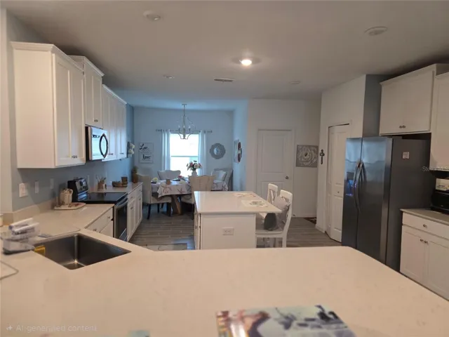At the heart of the home, the chef-inspired kitchen impresses with elegant quartz countertops, stainless steel appliances, a large center island, and a good size pantry. Both bar seating and a cozy café area make it ideal for everyday living and effortless entertaining. The open-concept layout flows seamlessly into the inviting gathering room and enclosed lanai—creating a perfect indoor-outdoor lifestyle. Step outside to a beautifully finished brick patio and fully fenced backyard, offering privacy and space to relax or entertain.