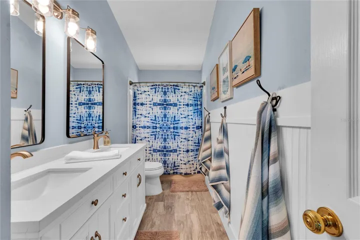 Upstairs, the primary suite serves as a true retreat, complete with a comfortable sitting area—ideal for a quiet reading nook or cozy morning coffee—an oversized walk-in closet, and a beautifully remodeled en-suite bath featuring dual sinks, updated vanity and fixtures, and a floor-to-ceiling tiled walk-in shower. Three additional generously-sized bedrooms with vaulted ceilings share an updated full bath, while new flooring extends throughout the entire upstairs level.