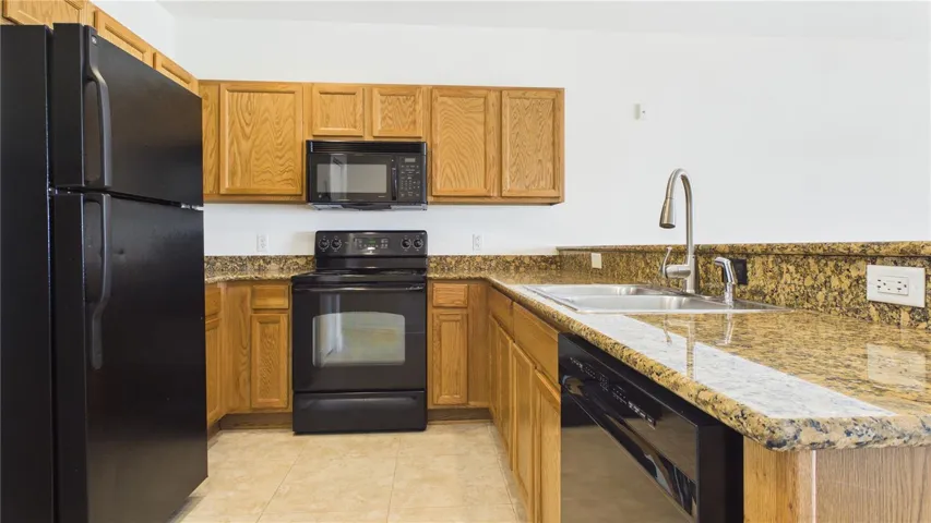 Step inside to an open floor plan dressed in fresh interior paint, brand-new carpet, and ceramic tile flowing through the main living spaces. The kitchen is built for real life — a welcoming breakfast bar for morning coffee or casual conversation, an appliance suite including refrigerator, dishwasher, built-in microwave, and disposal, and clean sightlines into the 20×13 living room that anchors the home.