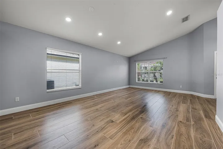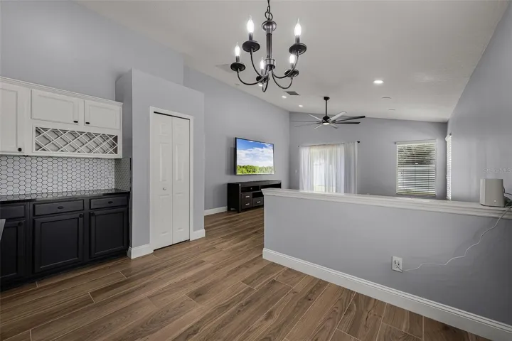 This beautifully remodeled single-family home offers 4 spacious bedrooms, 2 bathrooms, and an open one-level floor plan designed for both comfort and style. Step inside to discover wood-look tile flooring throughout, high ceilings, recessed lighting, and abundant natural light from the many windows with blinds already in place. The front of the home provides a flexible formal living and dining space, while the separate family room with sliding doors opens directly to the backyard patio—perfect for indoor/outdoor living. The renovated kitchen is a chef’s dream, featuring quartz countertops, a striking hexagon tile backsplash, island, included appliances, and cabinets with crown molding. A built-in wine bar with a wine rack adds a touch of luxury, while the convenient laundry room includes a washer and dryer. Both bathrooms have been fully remodeled with quartz countertops, modern rectangular vessel sinks, sleek black hardware, LED lighted mirrors with adjustable lighting and anti-fog features, tiled shower walls, frameless glass showers, and dual shower heads allowing for handheld or wall mount use. The luxurious primary suite is a true retreat, showcasing dual sinks, an oversized frameless glass shower with niche, black fixtures, and a bidet toilet. Enjoy a private backyard with a white PVC fence and a patio area ideal for relaxing or entertaining. Other great features include: 2-Car Garage with Tesla Charger, 6-Panel Doors with new black hardware, updated Light Fixtures, Ceiling Fans, Tankless Water Heater, AC System (2023), Gutters, NEST Thermostat, RING Doorbell, and Security System. Cypress Lakes offers unmatched amenities, including a state-of-the-art clubhouse, fully equipped fitness center, resort-style pool, splash pad, playground, dog park, tennis, pickleball, and basketball courts. Served by well-rated schools and centrally located with easy access to major highways, Orlando International Airport, Downtown Orlando, UCF, Research Parkway, and Waterford Lakes Town Center. Everyday conveniences such as a supermarket, pharmacy, gas station, and restaurants are just minutes away. This home perfectly combines modern upgrades and a resort-style community lifestyle. Don’t miss your chance to call this Cypress Lakes beauty your new home!