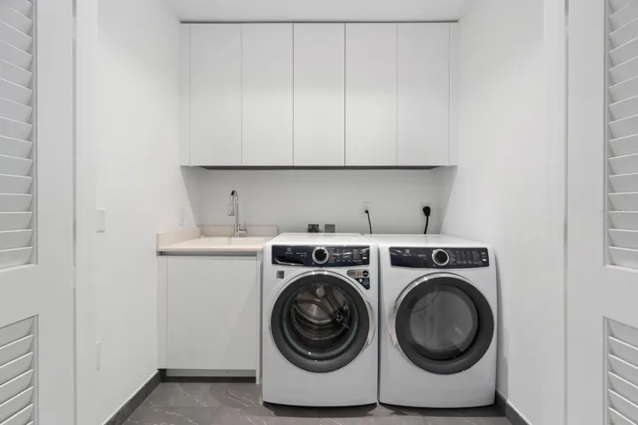 The kitchen is designed for both style and function, featuring Sub-Zero and Wolf appliances, elegant fluted cabinetry and elegant stone countertops. Additional highlights include large walk-in closets, Kohler fixtures, and a full-size premium washer and dryer. Blending comfort with sophistication, this residence showcases elevated living with unforgettable waterfront views.