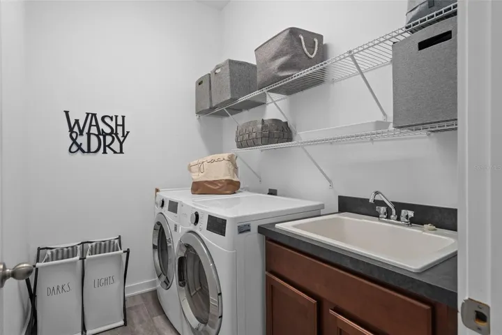 A spacious primary suite, complete with a luxurious master bath, features a large walk-in shower and separate tub with a generous walk-in closet. Wood-look LVP clads the floors throughout with tile in the bathrooms. Contemporary lighting fixtures add interest and pop to every room.