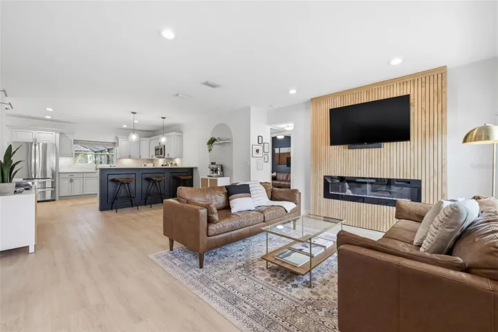 Step outside to your private backyard oasis featuring a heated saltwater pool and spa (installed in 2021), a covered and screened lanai, and a full pool cage – perfect for year-round enjoyment. The low-maintenance yard includes artificial, pet-friendly turf and even a putting green for a fun and functional outdoor space. Inside, you’ll find a spacious, open kitchen with stainless steel appliances and plenty of room to cook and entertain. Luxury vinyl plank flooring runs throughout the home, complemented by stylish touches like a statement accent wall and a cozy fireplace in the living room. The primary suite offers a true retreat with an en-suite bathroom featuring a large walk-in shower and a custom-designed walk-in closet system. Additional features include a water softener system and thoughtful updates throughout. This home also offers peace of mind – house did not flood and comes with an assumable flood insurance policy. Don’t miss your chance to own a move-in-ready home with exceptional outdoor living in one of St. Pete’s most desirable neighborhoods! Up to $5,000 towards closing costs with our preferred lender!