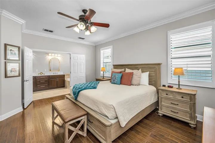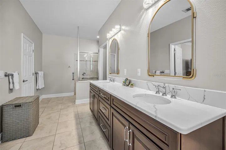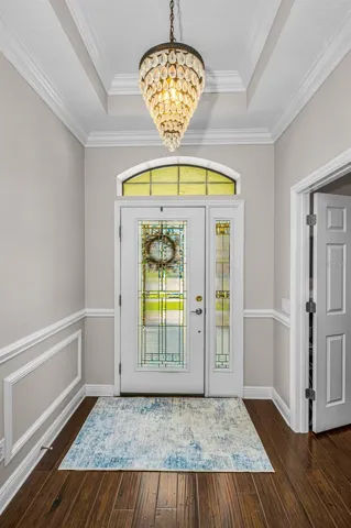 PRIDE OF OWNERSHIP Shows in this METICULOUSLY MAINTAINED Pool Home in the Vibrant MASTER PLANNED COMMUNITY of CONNERTON!(Enclave of Verona). BEAUTIFUL 3 Bedroom Plus Office, 2.5 Bath, 3 Car Tandem Garage with Oversized Birdcaged Pavered Lanai, HEATED POOLwith Large SPILLOVER SPA and Waterfall Feature! Relax or Entertain Family or Friends Under this Expansive COVERED LANAI Enhanced by Twinkle Lights in the Birdcage! Plus a FULLY FENCED BACKYARD!! (PVC FENCE provides PRIVACY) Attractive Leaded Glass Front Door with Side Light! Foyer is Accentuated with Stunning Custom Accent Walls and CUSTOM CROWN MOLDING! Upgraded, DESIGNER LIGHT FIXTURES!! Stunning WOOD FLOORING FLOWS SEAMLESSLY Throughout with Exception of 2 Carpeted Guest Bedrooms! Ceiling Fans with Lights Throughout! NEUTRAL DECOR INTERIOR PAINT! Desirable OPEN FLOOR PLAN CONCEPT!! GOURMET CHEF’S KITCHEN has White Double Stacked Cabinetry with Lighting! QUARTZ COUNTERTOPS with Stylish TILE BACKSPLASH!! UPGRADED GE Cafe Stainless Appliances! 6 BURNER GAS RANGE with STAINLESS HOOD!! LARGE QUARTZ PREP ISLAND with Oversized Sink! Cabinet Pantry has ROLL OUT SHELVES!!! Mimic’s the HGTV LOOK! Family Room/ Dining Room Combo! Wonderful for a Relaxed Lifestyle!! Quality WHITE PLANTATION SHUTTERS!! Oversized Primary En Suite Features 2 Large WALK IN CLOSETS!! Primary Bathroom has Dual Vanities, QUARTZ COUNTERTOPS! Upgraded Mirrors and Light Fixtures! LARGE WALK IN SHOWER with Floor to Ceiling Tile! SOAKING TUB Completes the Room! Desirable SPLIT BEDROOM Plan for Owner’s Privacy! OVERSIZED LAUNDRY ROOM Features an Abundance of Built In Cabinetry! NEWER A/C System – August 2025! NEWER POOL HEATER – Aug 2024, WATER SOFTENER! Gas Hot Water Heater, WINDOW FILM helps with Energy Efficiency! Concrete Curbing around Flower Beds! Palm Tree’s, Lush Landscaping! RECLAIMED WATER FOR IRRIGATION, Saves You Money! Amenities Include: Clubhouse, Multiple Resort Style Pools, Fitness Center, Tennis, Pickleball, Volleyball and Basketball Courts! Dog Parks!, Multiple Playgrounds, Parks! Miles of Scenic Trails! PERFECT BLEND of NATURE Preserves and RESORT STYLE LIVING!! GREAT LOCATION!! Easy Access to Tampa International Airport, Hospitals, Restaurants, Shopping, Sports Venues! Excellent Schools! Golf Cart Friendly Community! PARADISE IS AS CLOSE AS YOUR OWN BACKYARD!! Must See Inside to Appreciate!