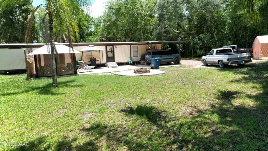 **OWN YOUR OWN LAND** 2 bedroom, 2 bathroom manufactured home situated on just under a half acre of privately owned land, offering added space and privacy with no lot rent. The home features title flooring throughout along with ceiling fan and light fixtures in multiple living areas for comfort and functionality. This property includes a partially fenced yard and a two-car carport with a concrete pad located at the rear of the home.