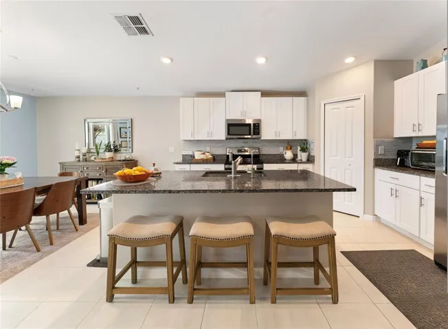 Step into this stunning, like-new 3-bedroom, 2.5-bath home in the sought-after community of Abbot Square! From the moment you walk in, you’ll appreciate the bright, open layout where the family room, dining area, and kitchen come together seamlessly—perfect for entertaining or everyday living. The kitchen is a standout feature, showcasing shaker-style cabinetry, granite countertops, stainless steel appliances, and a large center island that makes cooking and gathering effortless. Porcelain tile flooring flows through the main living areas, while the bedrooms offer cozy carpet for added comfort. The split floor plan provides privacy, with a spacious primary suite that feels like a true retreat. Enjoy a spa-inspired bathroom with a double vanity, ample storage, and a large walk-in closet enhanced with a custom Closet by Design system.