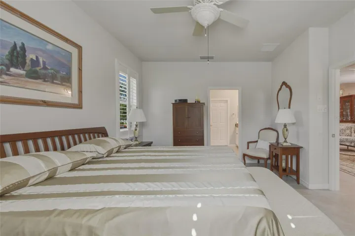 Step inside to find tile flooring throughout, creating a clean, cohesive look that’s both stylish and easy to maintain. The home features upgraded materials and finishes, including enhanced cabinetry, well-appointed bathrooms, and elegant can lighting that adds warmth and depth to the living spaces.