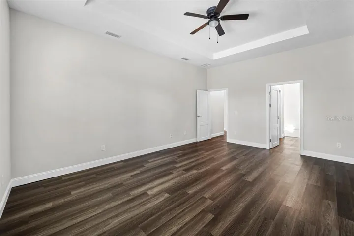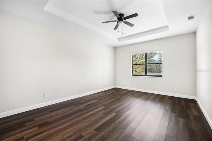 Open floor plan, vaulted ceilings, modern kitchen with 42-inch shaker cabinets all wood, double stainless-steel sink, goose neck faucet, quartz counter tops, functional cooking island, huge Lanai Master bedroom is oversized with trey ceilings, double walk-in closets. pull down-stairs to attic access. Garage is extra deep to accommodate extra-long vehicle. Short walk to community mailboxes. This is a must see.