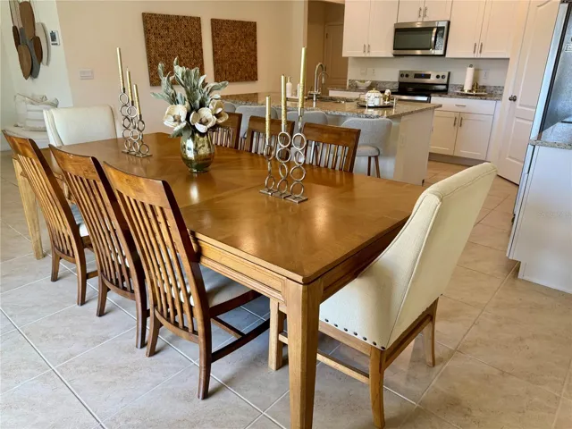 plan ideal for everyday living. The interior showcases high ceilings and elegant ceramic tile flooring throughout the