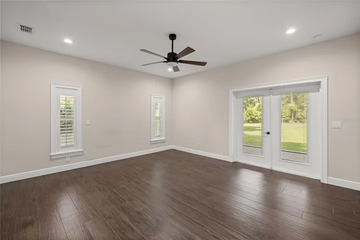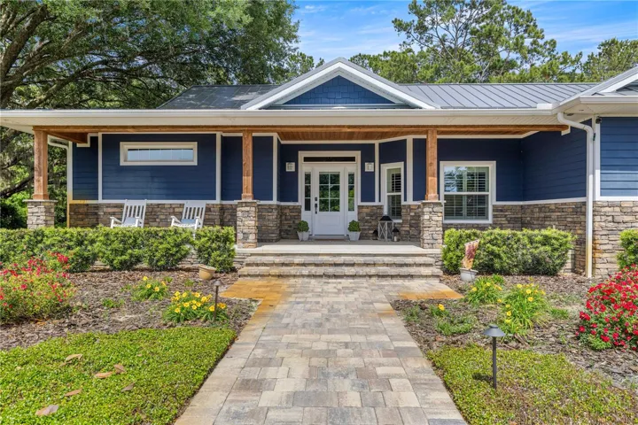 Experience an unparalleled sense of space and privacy with this rare double-parcel offering in Silver Meadows Central. This stately 2021-built custom home spans a combined 2.54 acres, delivering a sprawling landscape that backs directly to state forestry land. The residence features a masterfully designed 3-bedroom, 2.5-bathroom floor plan across 2,398 square feet of modern living space. The interior is anchored by an open-concept chef’s kitchen, complete with sleek quartz countertops, a generous central island, and premium shaker cabinetry. The primary retreat is a study in relaxation, featuring elegant tray ceilings and a spa-inspired ensuite with a walk-in shower and dedicated soaking tub. Showcasing high-end finishes throughout the interior, Hardie Board exterior, long lasting metal roof, and extensive landscaping – this home is engineered for both aesthetic appeal and long-term peace of mind. The oversized backyard offers a perfect canvas for a custom pool, guest house, or detached workshop, all framed by a serene, wooded boundary with no rear neighbors. The expansive frontage welcomes you with a grand covered porch, professional uplit landscaping, and a sweeping circular drive that connects the dual parcels. Furthermore, the adjacent Drainage Retention Area (DRA) is fully maintained by the HOA, providing the visual benefit of a vast private park without the added upkeep or cost to the landowner. Residents enjoy access to premium community amenities—including a recreation center with tennis, basketball, and racquetball courts—all while being strategically situated in one of Marion County’s most desirable, low-density enclaves. Only a short trip to local amenities like food, shopping, and more. This home is gorgeous and ready for its new owners!