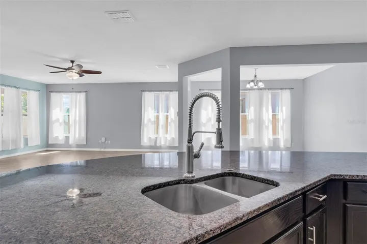 Welcome to this 4 bedroom, 3 full bath home with a functional three-way split floor plan offering privacy for families, guests, or multi-generational living. Open layout with durable ceramic tile flooring throughout. Spacious kitchen features an oversized island with plenty of prep space and room for casual dining, all open to the main living area. The charming front porch creates a welcoming entry and additional outdoor space. Fully fenced backyard features a patio with a pergola for shaded outdoor living. Paid-off solar panels help keep energy costs very low, adding long-term efficiency and value. Located in a smaller community of approximately 75 homes with access to a community pool. Convenient to nearby shopping, dining, and major roadways, making daily routines and commutes simple. A practical, well-laid-out home designed for comfortable, flexible family living.