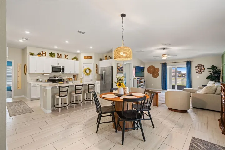 Welcome to 13213 Peachleaf Drive in Riverview—a beautifully upgraded 4-bedroom, 2-bath home offering 1,841 square feet of modern living and a spacious 2-car garage. This move-in ready home features an open-concept layout with stylish accent walls that add warmth and character to the main living space. The kitchen and both bathrooms are upgraded with sleek quartz countertops, delivering a clean, modern finish throughout. The split floor plan provides added privacy, with a spacious primary suite and well-sized secondary bedrooms—perfect for family, guests, or a home office. The secondary bathroom has been tastefully upgraded with custom shower tile for a more refined look. Step outside to your screened-in patio overlooking a fully fenced backyard with peaceful pond views—ideal for relaxing or entertaining. The yard features brand new sod and a full irrigation system to keep it looking its best year-round. Located in a desirable Riverview community, residents enjoy access to resort-style amenities including a clubhouse, two swimming pools, and sports courts—perfect for an active and social lifestyle. Conveniently located near shopping, dining, and major highways for an easy commute. Don’t miss your chance to own this upgraded, move-in ready home in a prime location—schedule your private showing today!