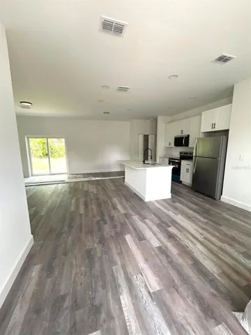 Brand new construction home that seamlessly blends modern design, minutes from Historic Downtown Ocala, Schools, Chuches, Cars Dealers, Pharmacies, Restaurants, Supermarkets, Gas Stations, everything near you. You’ll have plenty of space for boat or RV parking on the side. Inside, this meticulously crafted home offers nearly 1700 sqfts of thoughtfully designed living space, featuring four bedrooms, two bathrooms, and two-car garage. The open-concept layout is an entertainer’s dream, boasting high ceilings with recessed lighting, and luxury vinil flooring throughout. At the heart of the home, the gourmet kitchen is both stylish and functional, complete with Granite countertops, a large island with ample seating, premium brand-new stainless-steel appliances. The owner’s suite is a serene retreat, offering an ensuite bathroom with dual Granite-topped vanities, a dedicated makeup area, shower with floor-to-ceiling tile, and a spacious walk-in closet. Additional highlights of this home include an indoor laundry room, and hurricane impact windows, and doors for peace of mind. This exquisite home won’t last long—schedule your private tour today!