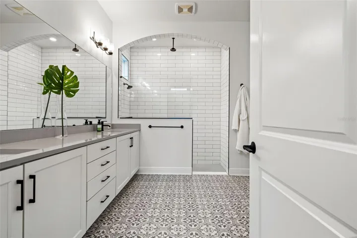 Additional upgrades include PLANTATION SHUTTERS, a UV LIGHT HVAC PURIFICATION SYSTEM, WHOLE-HOUSE WATER FILTRATION SYSTEM, IN-WALL PEST CONTROL, OVERHEAD GARAGE RACK STORAGE, and an added TOOL STORAGE SYSTEM.