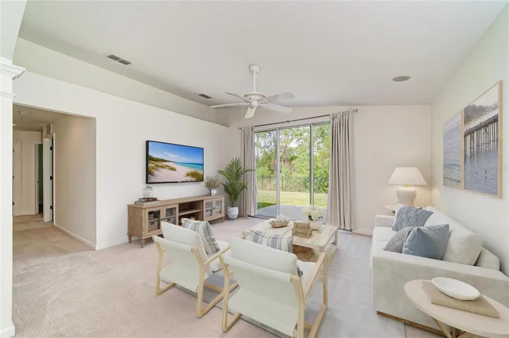 One or more photo(s) has been virtually staged. Welcome to your next home in Harrison Ranch! This 4-bedroom, 2-bathroom home offers the perfect blend of comfort, style, and functionality. From the moment you arrive, you’ll notice the stunning stone-facing exterior that adds timeless curb appeal. Step inside to find a welcoming living and dining room combination, ideal for both everyday living and hosting guests. The heart of the home is the upgraded kitchen, featuring stainless steel appliances, quartz countertops, a stylish tile backsplash, and a cozy eat-in space. The kitchen flows seamlessly into the family room, creating an open-concept layout perfect for entertaining. Designed with privacy in mind, the home offers a desirable split floorplan. The master suite is tucked away on one side of the home and features 2 closets and an ensuite bathroom complete with dual sinks, a garden tub, walk-in shower, and a separate water closet. On the opposite side of the home, you’ll find three additional bedrooms and a full bathroom, perfect for family or guests. Enjoy beautiful sunsets when you step outside to the fully fenced backyard with serene pond and preserve views, offering both privacy and a peaceful setting. Major updates provide peace of mind, including a new roof in 2025 and AC replaced in 2021. Additional highlights include a dedicated laundry room, irrigation system, and hurricane shutters for added convenience. Recent school rezoning has Harrison Ranch going to a new High School, which opened in 2019. Harrison Ranch offers a 24 hour gym, heated junior Olympic pool, tennis/pickleball/basketball courts, playgrounds, ball fields, and 5.5 miles of beautiful hiking trails. An activity director is also on-site, putting on fun events for families as well as active adults. Tampa, St. Pete, Sarasota and beautiful beaches are all within 45 minutes, making this a perfect central location. Harrison Ranch offers you a beautiful community and a lifestyle you can truly enjoy.